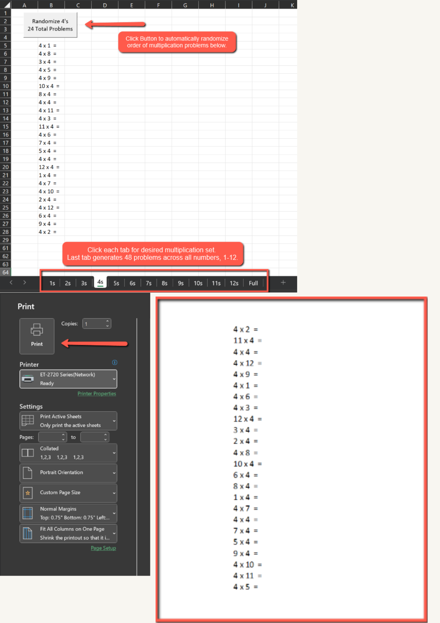 You get: (1) PDF with easy instructions and link to download Excel Multiplication Generator.